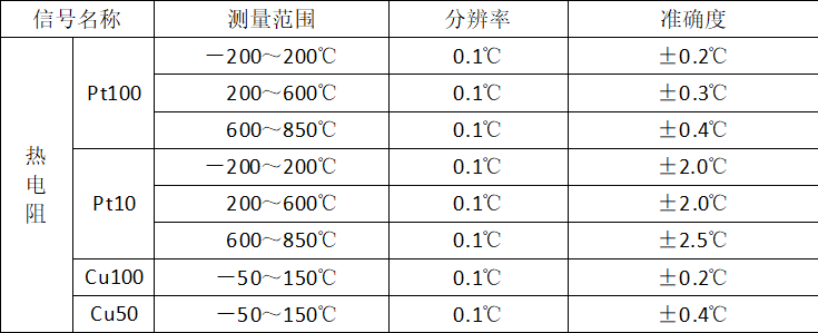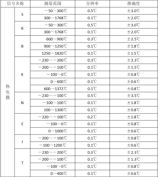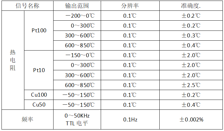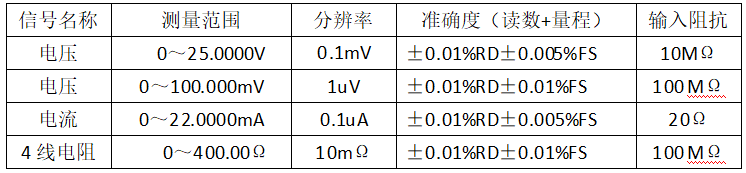 | 信號(hào)名稱 | 輸出范圍 | 分辨率 | 準(zhǔn)確度(讀數(shù)+量程) |
