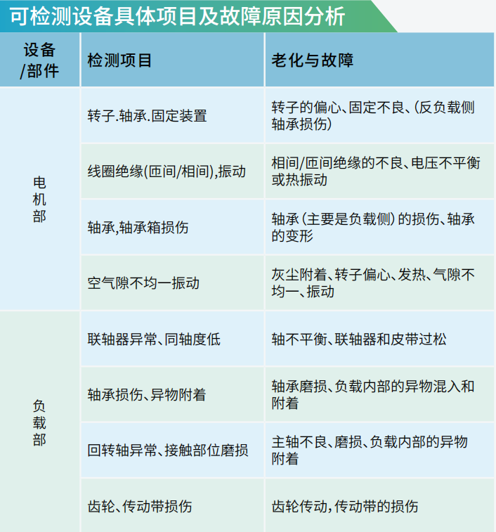 二、可檢測(cè)設(shè)備具體項(xiàng)目及故障原因分析
